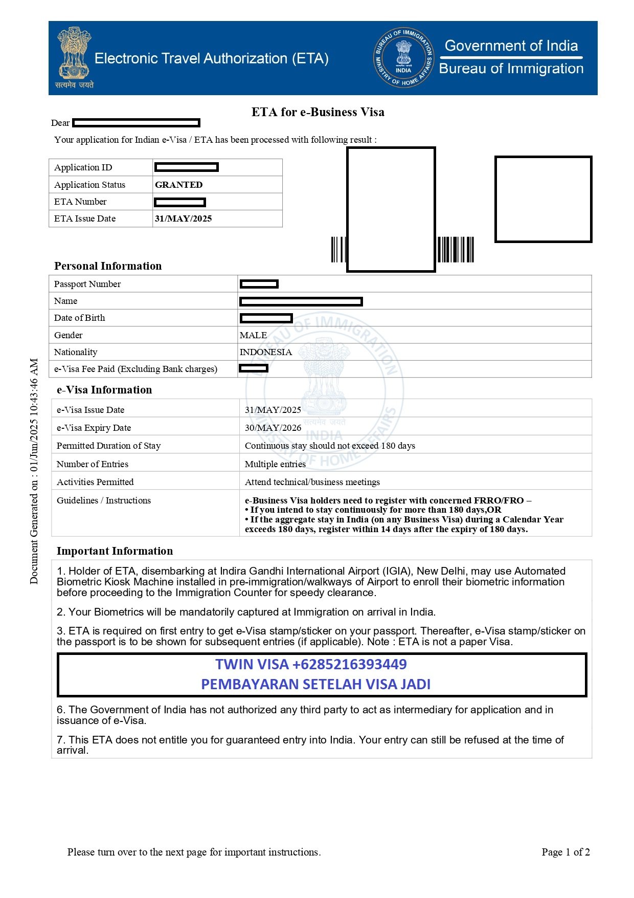 Jika anda ingin melakukan perjalanan ke India dalam rangka wisata, bisnis, bekerja dan urusan lainnya. Dan tidak mau direpotkan dengan pengurusan visa yang belum anda pahami sehingga membuang banyak waktu dan biaya. Twin visa hadir sebagai solusi terbaik untuk anda dalam pengurusan visa India sehingga perjalanan anda aman dan lancar tanpa hambatan.