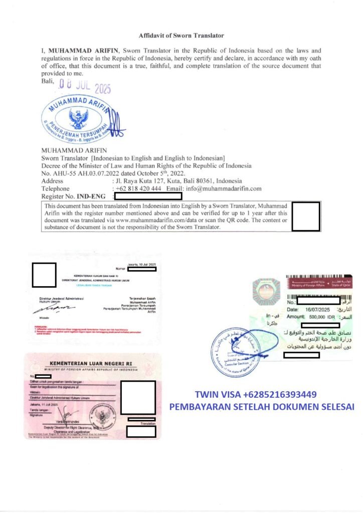 TWIN VISA adalah biro jasa profesional yang bergerak di bidang pengurusan visa dan dokumen dalam negeri untuk keperluan luar negeri. Dengan pengalaman lebih dari 8 tahun, kami telah menjadi mitra terpercaya bagi ratusan klien dalam mengurus berbagai keperluan legalisasi, visa, dan dokumen resmi.